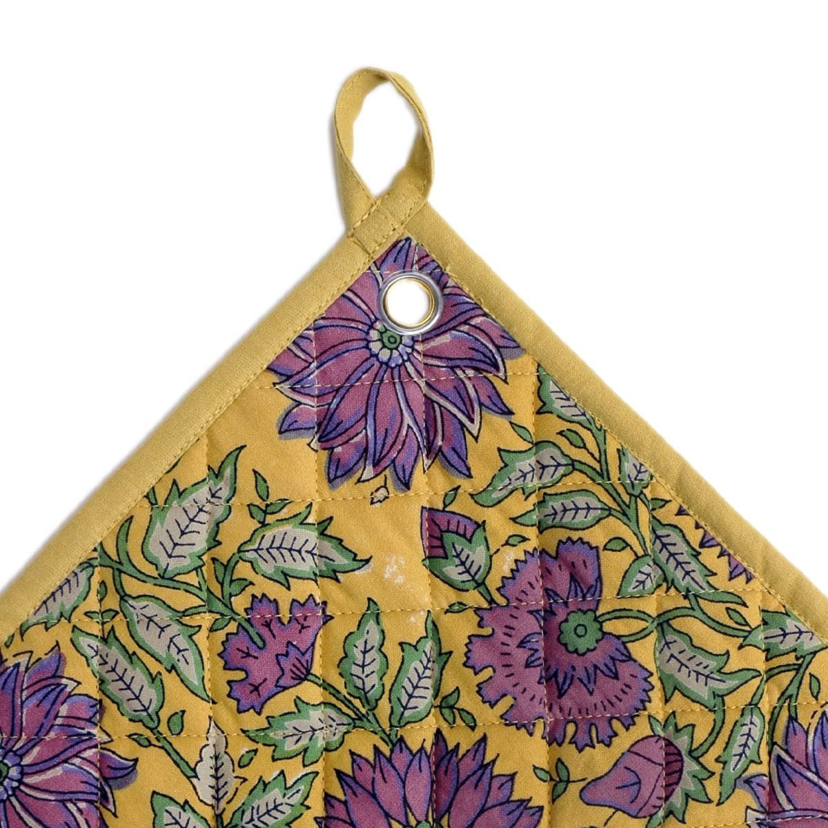 Imbarro – Pannenlappen – Set 2 stuks – 25×25 cm – Katoen – Noraly – Geel/Paars
