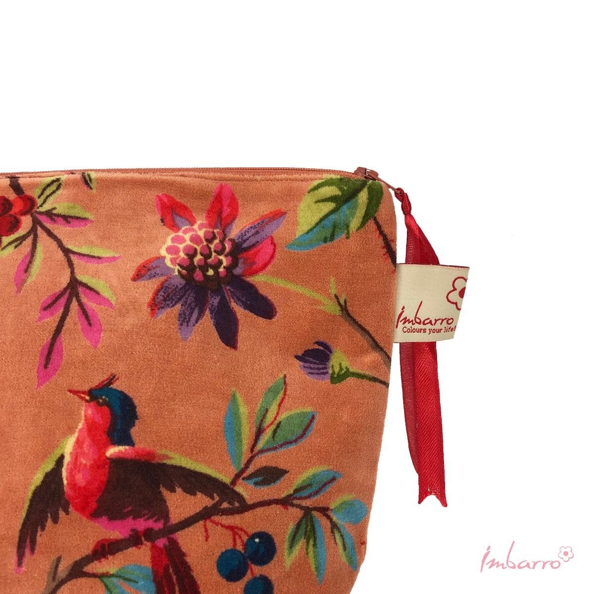 De Pouch /toilettas Paradise Coral van Imbarro Home & Fashion is een mooie pouch gemaakt van velours.