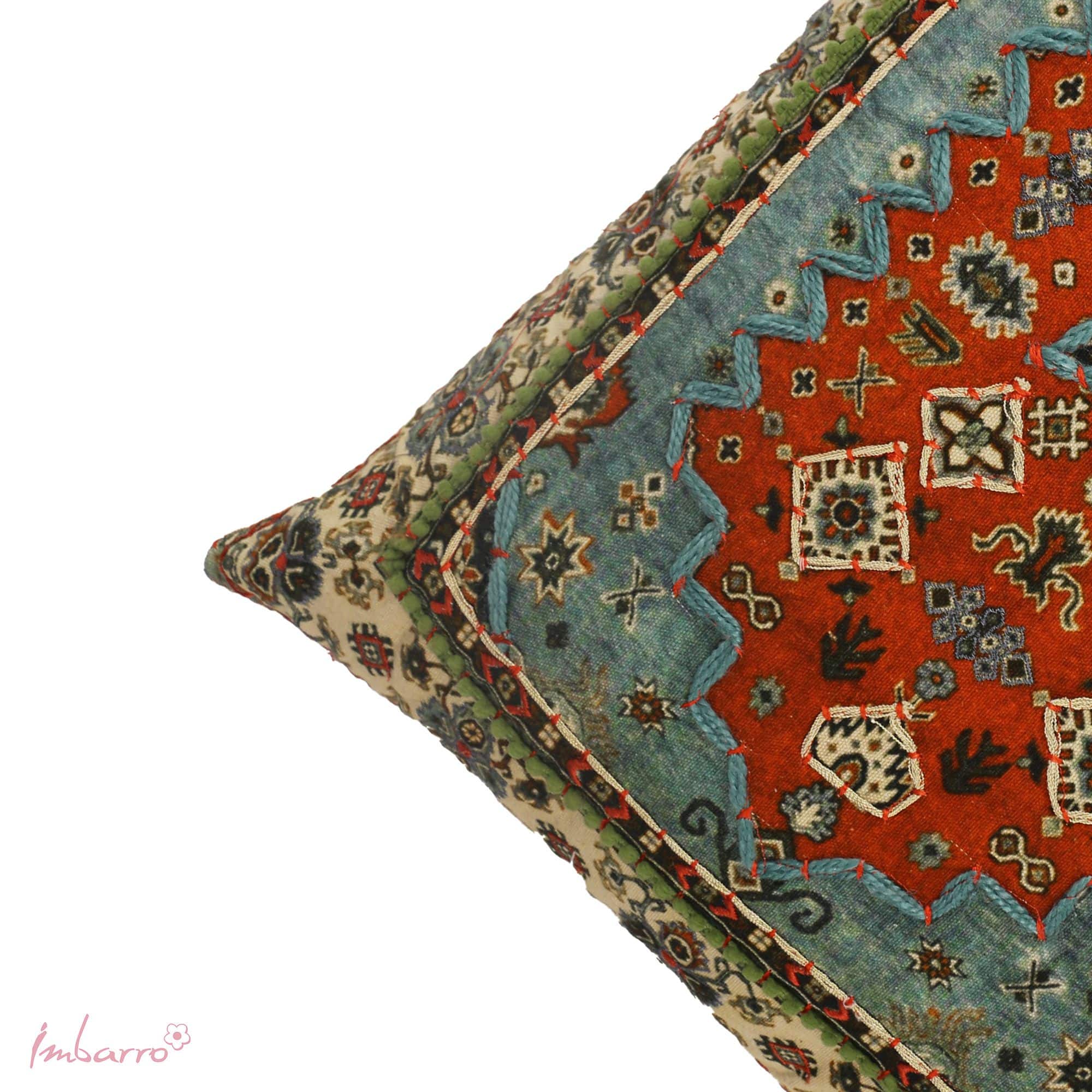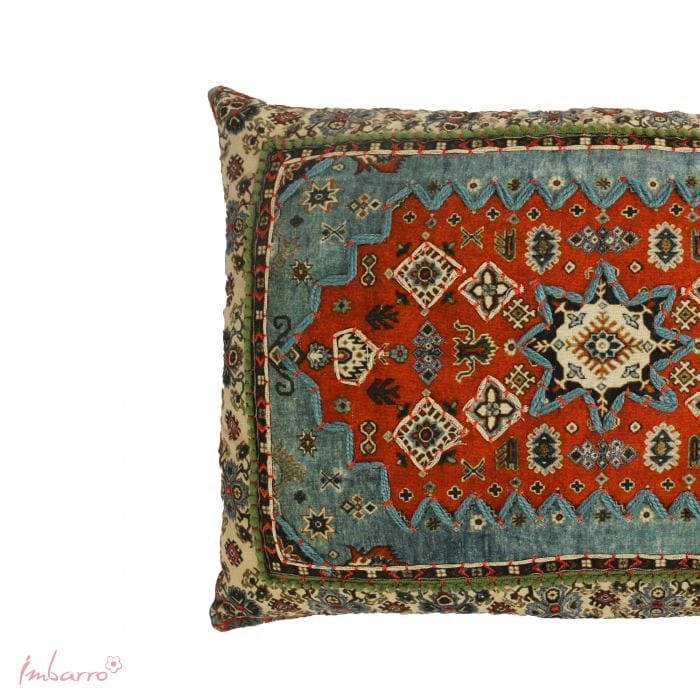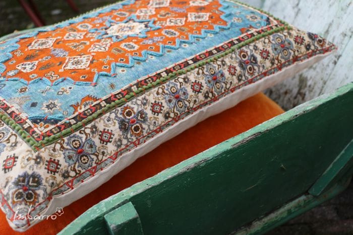 Een stoer kussen met een etnisch patroon die levendigheid brengt in huis, dat is Meadow het trendy kussen van het gave merk Imbarro Home & Fashion.