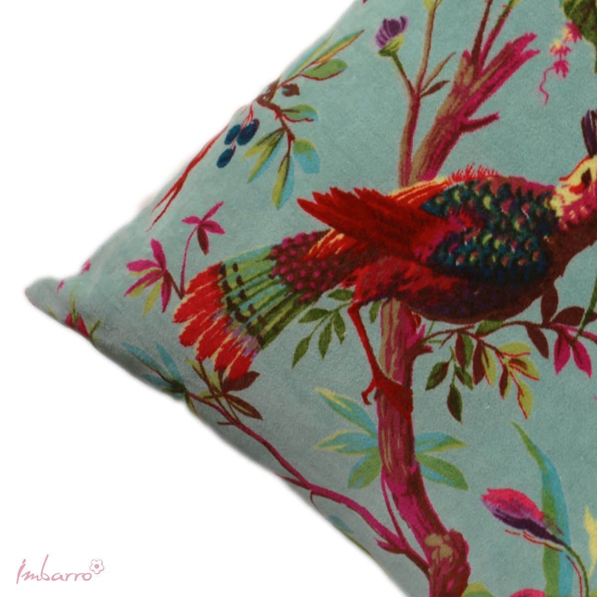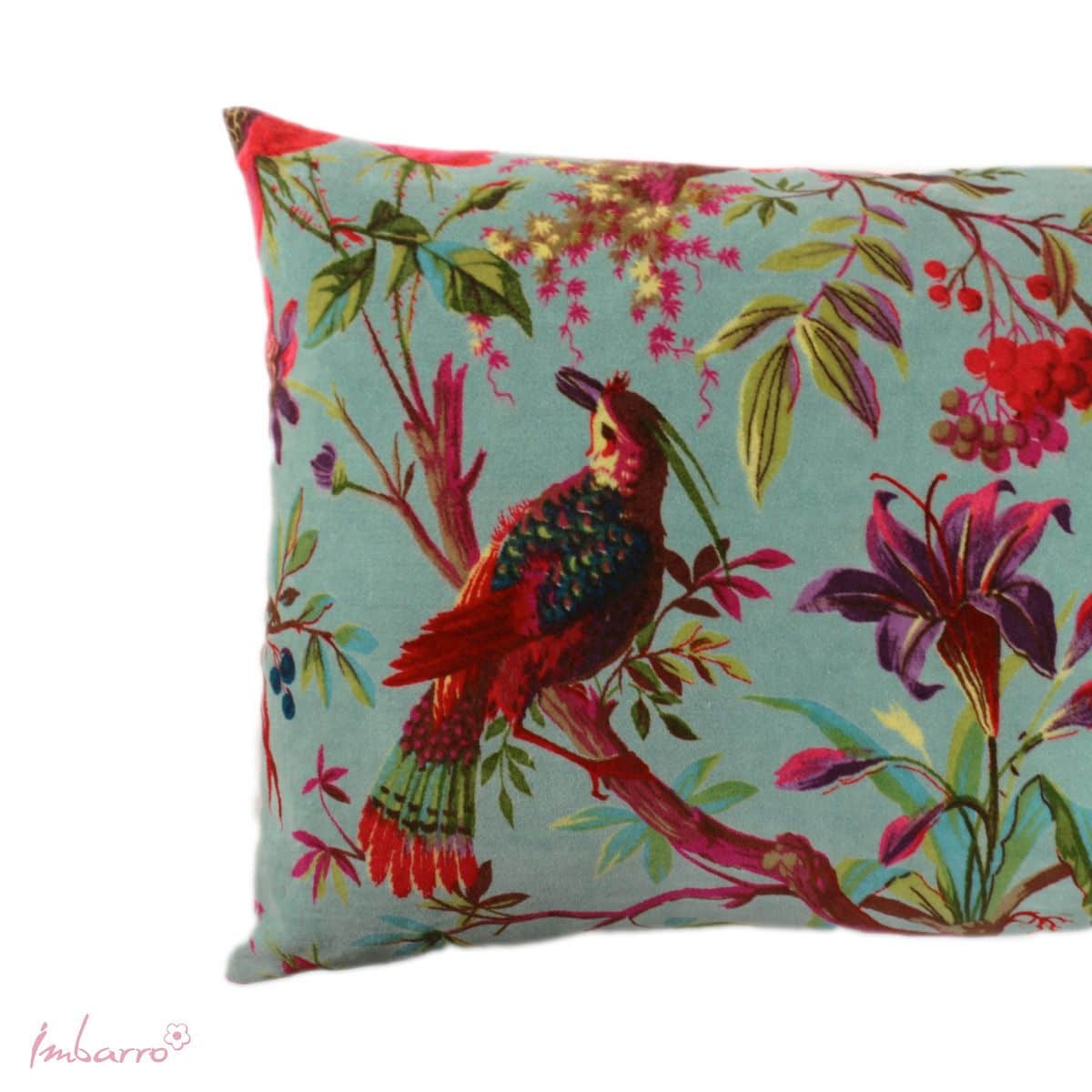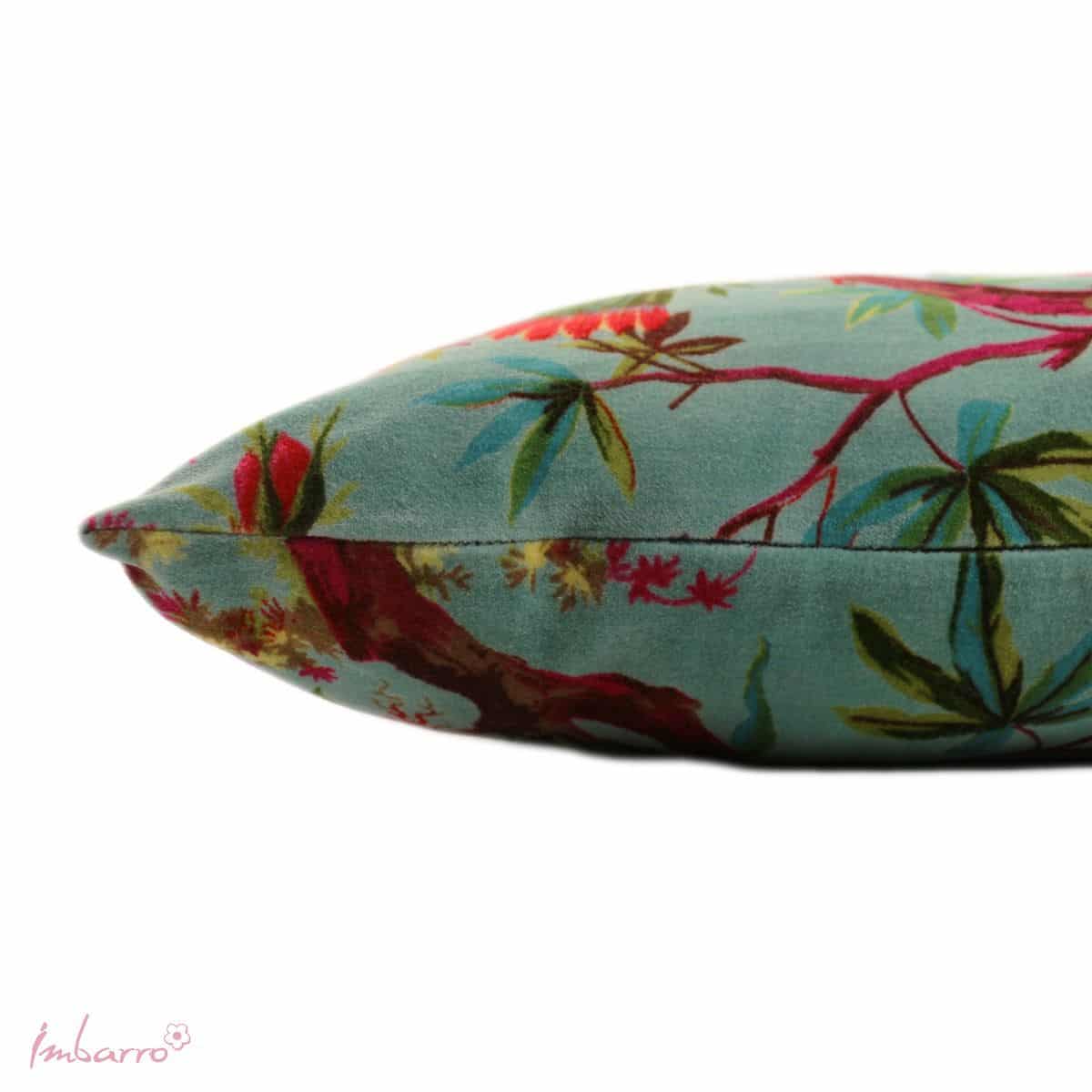 De rijke kleuren van het Paradise patroon worden handmatig met screens in meerdere lagen op de prachtige velvet stof geprint. Door deze unieke bewerking van de stof krijg je mooie diepte kleuren in de print.