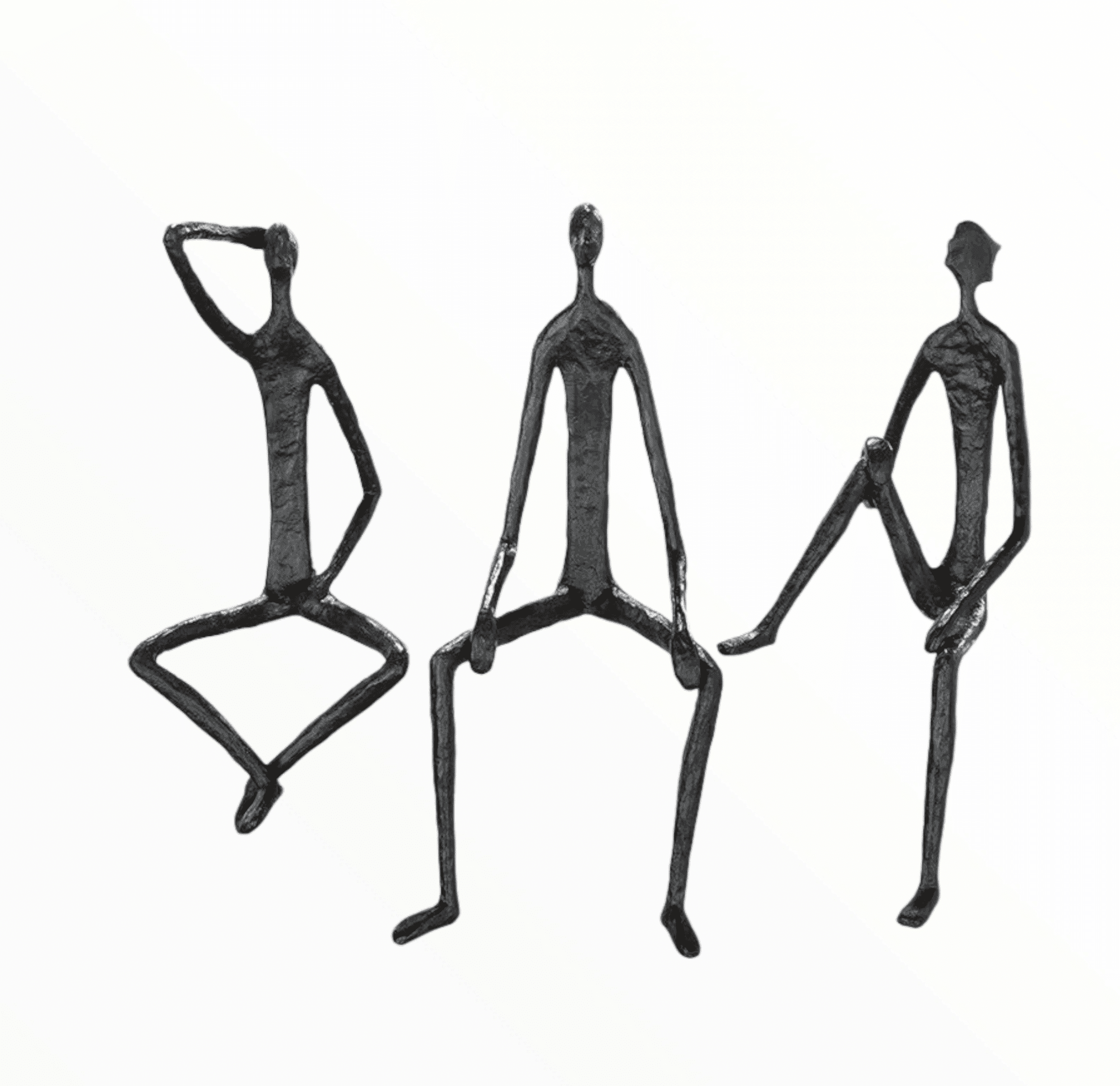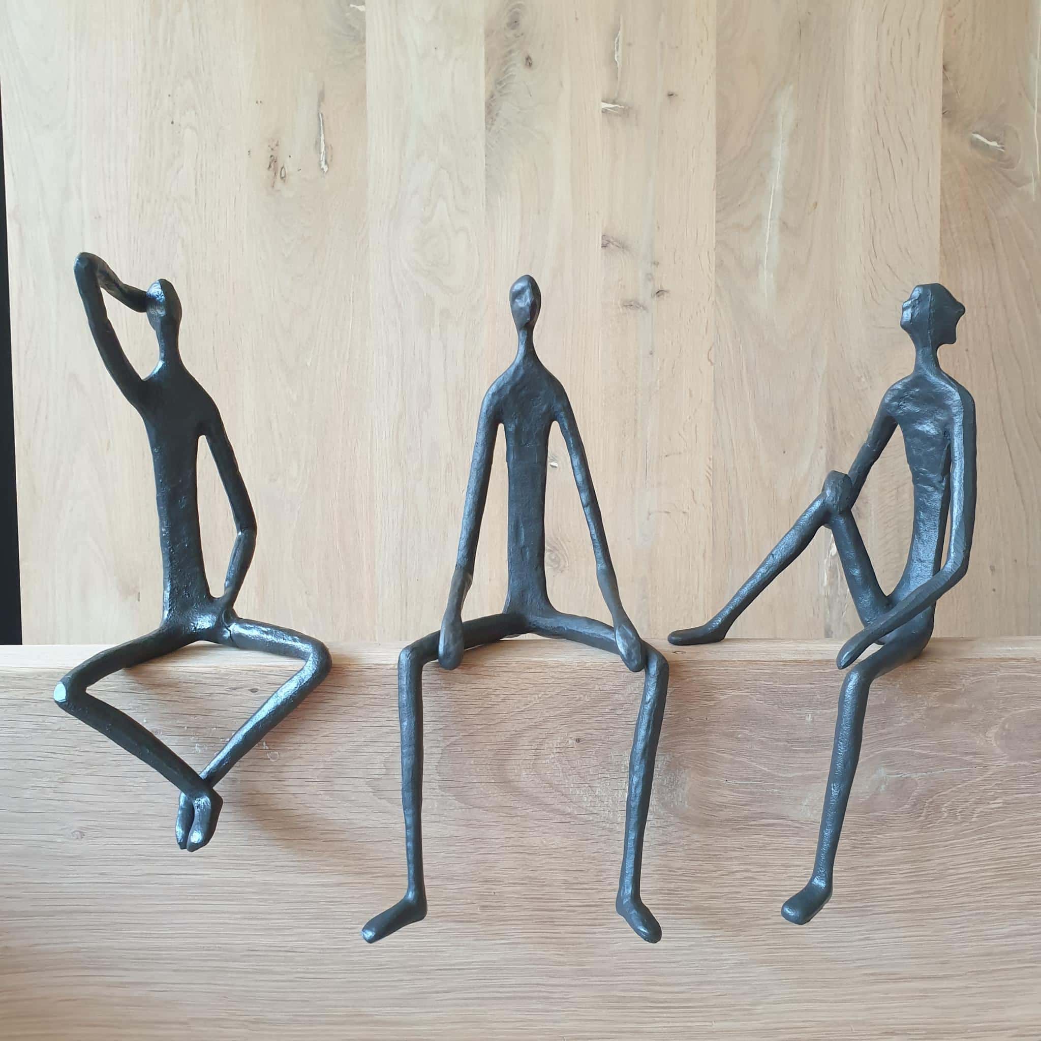 Gek op design en tegelijkertijd een interieur item wat een betekenis heeft? Dan is deze set van 3 zittende mensen van staal echt iets voor jou.